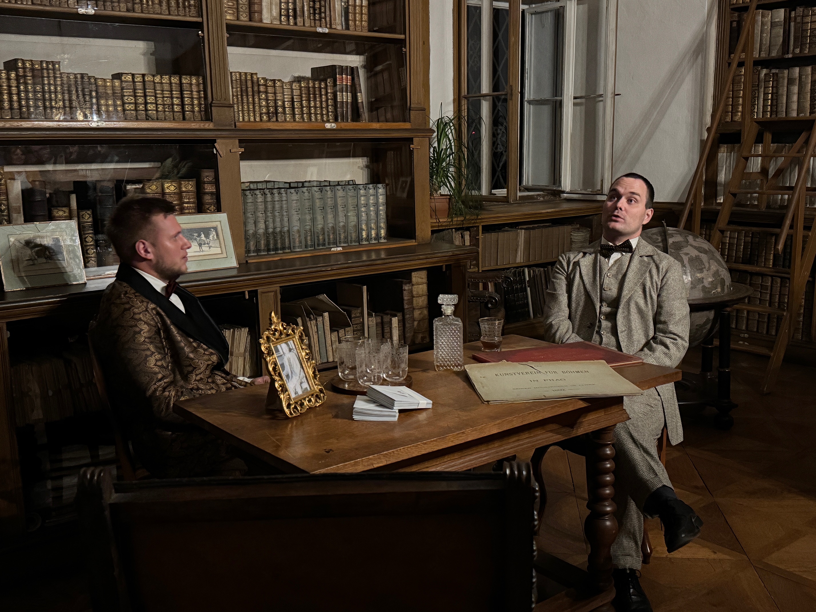 Během noční prohlídky se vrátíte do atmosféry první republiky, do roku 1925. Nahlédnete do spletitých vztahů šlechtické rodiny Colloredo-Mannsfeldů. Poznáte obě manželky knížete Josefa, které si rozhodně nebyly po chuti, i Jeronýma - Josefova bratra, jenž čelí milostným eskapádám své ženy Berty. Snad jako jediný si nepřipouští, že se něco v jejich vztahu začíná kazit... Na scéně se objevuje americký zpěvák Hayes...